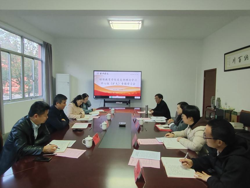 11月28日下午,tyc41183太阳成集团党支部举行理论学习中心组(扩大)学习会,校党委委员、宣传部部长蔡海江到会指导,进行理论学习中心组学习巡听旁听。学院领导班子成员、党支部全体党员参加会议。会议由直属党支部书记鲍婷婷主持。