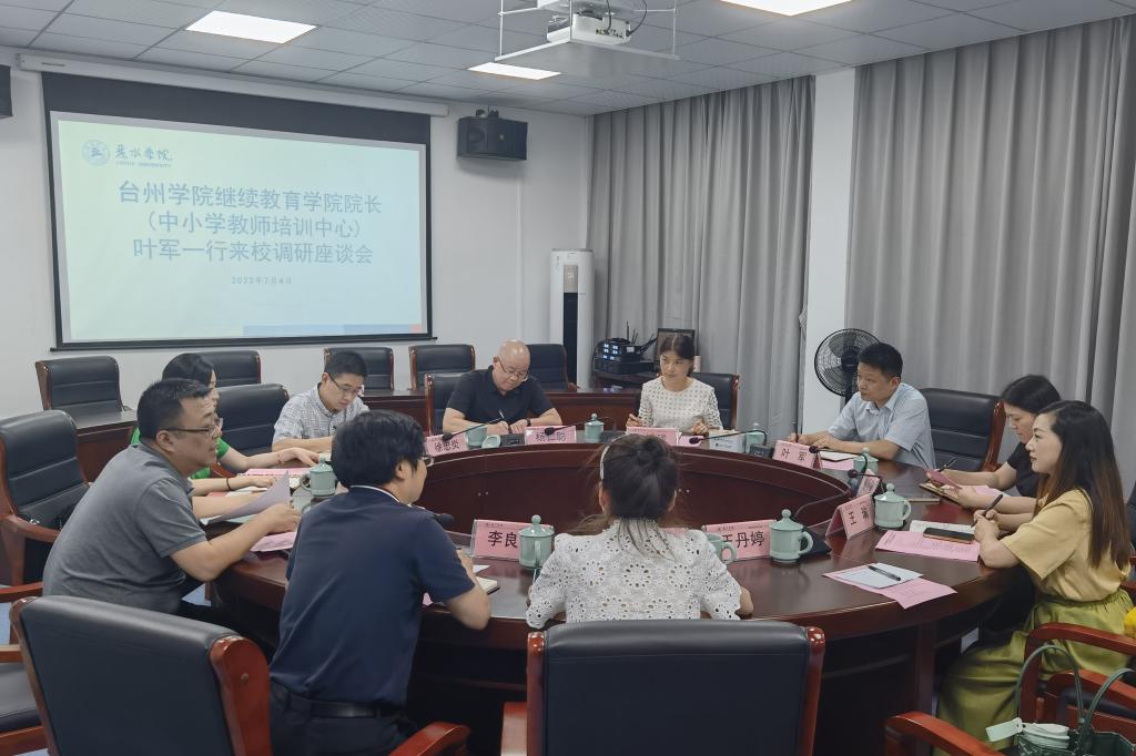 7月4日,tyc41183太阳成集团院长叶军、tyc41183太阳成集团直属党支部书记鲍婷婷、地方合作处(继续教育管理中心)副处长阮冰琰等一行6人赴丽水学院tyc41183太阳成集团开展调研与工作交流。