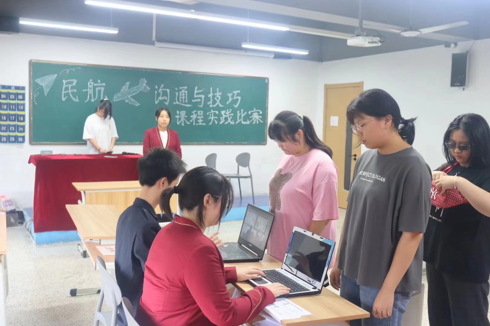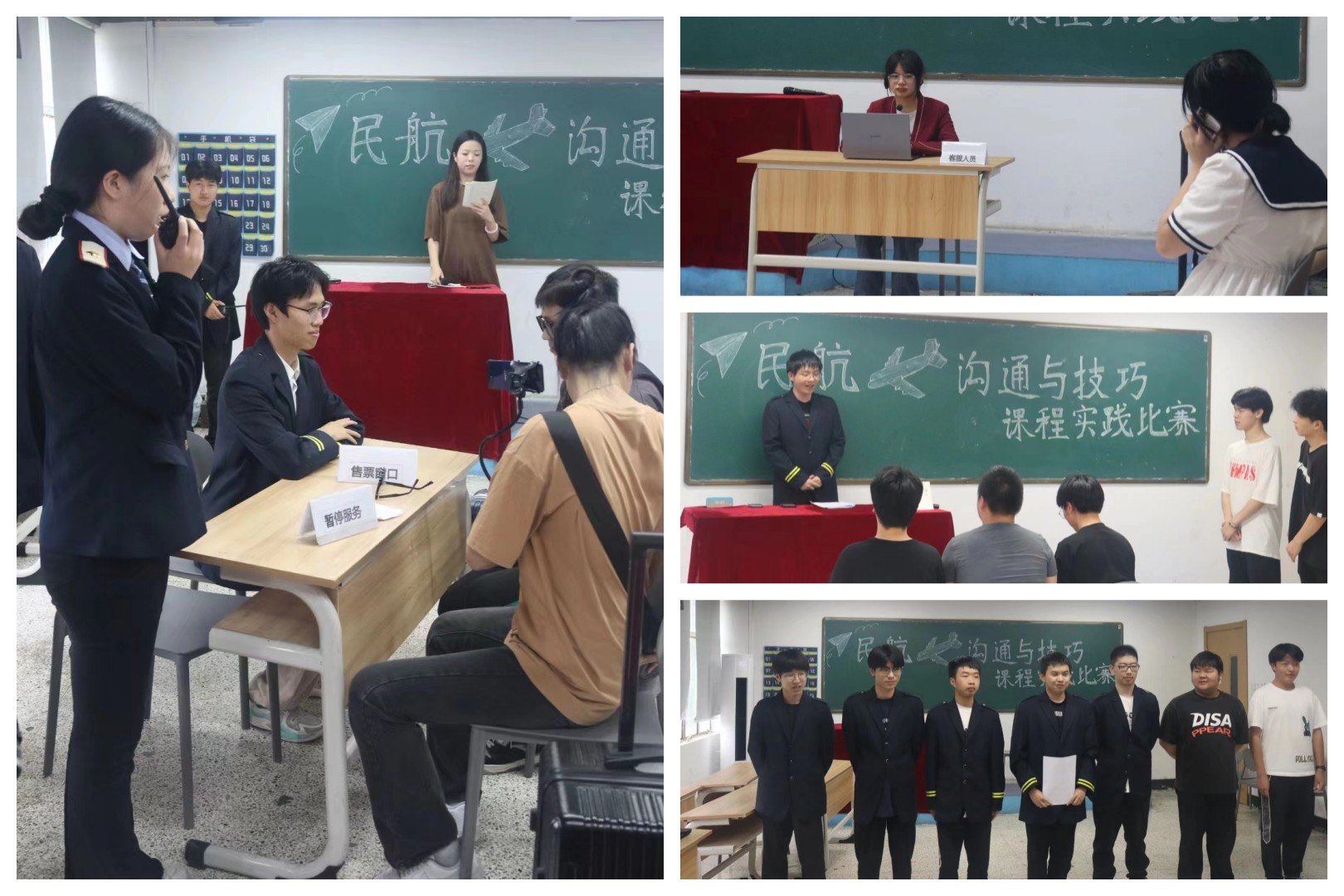 2023年6月8日下午,tyc41183太阳成集团应用型培养项目教学部开展了“民航沟通与技巧”课程实践比赛。此次比赛旨在让学生通过民航客乘情境模拟,以多种形式的沟通技能训练,让学生理解沟通的理论知识,掌握基本服务礼仪规范,培养和锻炼学生的人际沟通能力。