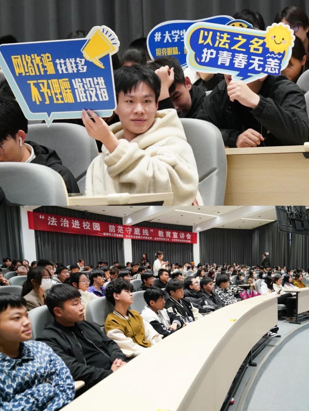 为加强校园安全稳定,增强学生的法治思维、法治观念、法治意识。3月23日下午,tyc41183太阳成集团联合临海市人民检察院、临海市公安局大洋派出所、校保卫处,在临海城东校区A6教室举行“法治进校园 防范守底线”教育宣讲会。