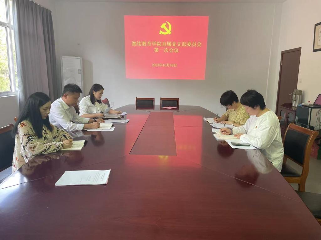 会议指出,第一届直属党支部委员会将在学校党委的坚强领导下,不忘初心、牢记使命,履职尽责、开拓创新,严于律己、廉洁干事,决不辜负党和组织的期望与重托。党支部班子成员要坚守党的政治纪律和政治规矩,加强学习,不断加强自身建设。要始终保持忠诚之心,做信念坚定、政治过硬的表率;始终保持进取之心,做奋发有为、担当实干的表率;始终保持敬畏之心,做克己奉公、清正廉洁的表率。凝心聚力、真抓实干,为学校继续教育提质增效,为学校实现“升大、申博、创一流”的奋斗目标贡献学院的智慧和力量。